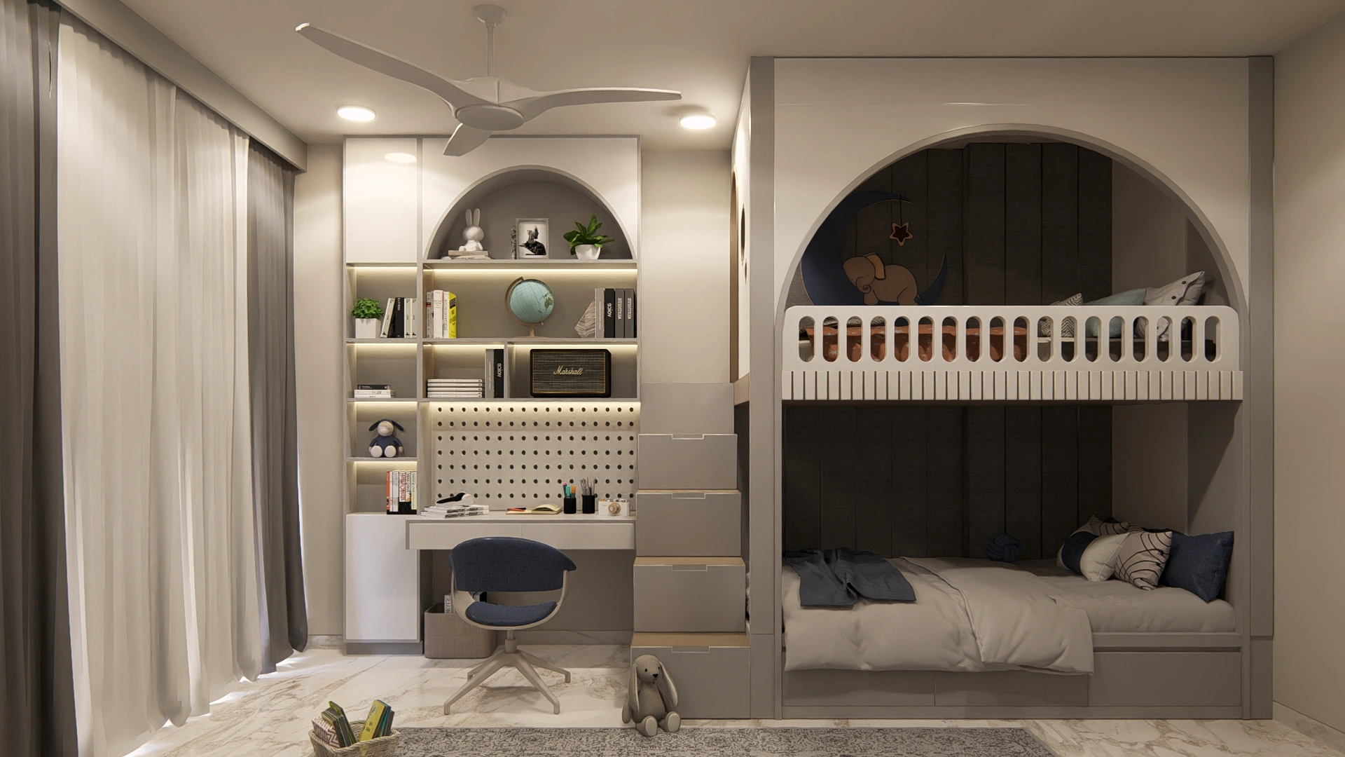 Luxurious bungalow interiors reflecting personal style and comfort, featuring spacious layouts, high-end materials, and bespoke furnishings that create warm, inviting living environments for families.
