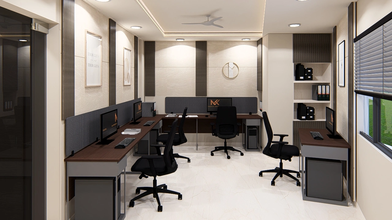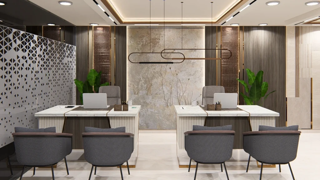 Professional office interiors fostering productivity and collaboration through ergonomic design, modern aesthetics, and flexible workspaces that inspire creativity and enhance employee wellbeing.